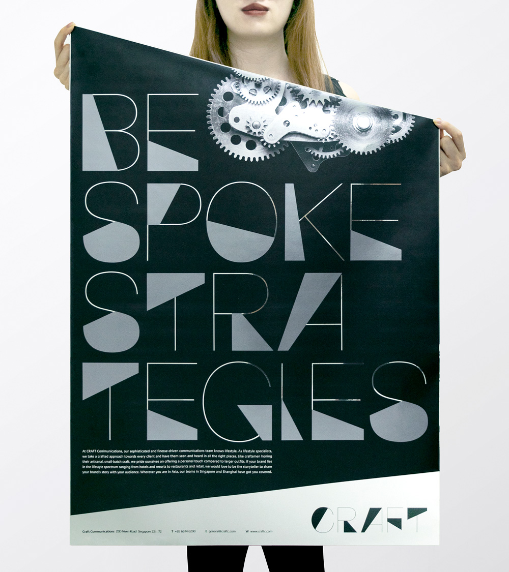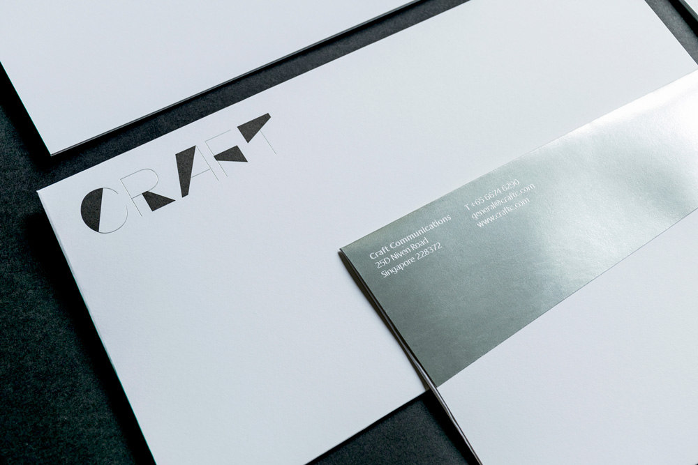 Craft is a boutique public relations and communications agency whose forté lies in the tailored solutions for lifestyle and retail clients. Keeping in line with the trends of these industries, the logo translates modernity and an identity that is in tune with portrayal of such industries. The logotype depicts the act of refinement; crafting bold shapes into streamlined words, akin to the process of effective management of and filtering massive information into a clear, concised message to the public.