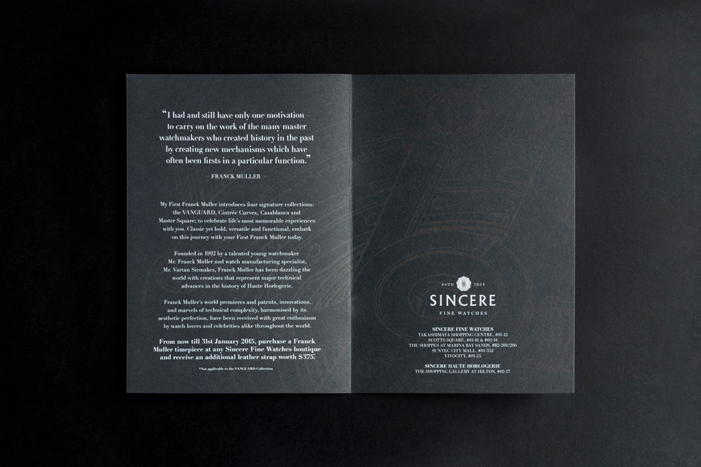 Deemed as the “Master of Complications”, Franck Muller is one of the most prestigious and creative horological brands in the world. We assist in their luxury marketing programmes with the objective of better audience reach and garnering interest from new watch aficionados. The scope includes conceptualising and art directing key visuals for new models and applying advertising and below-the-line communications.