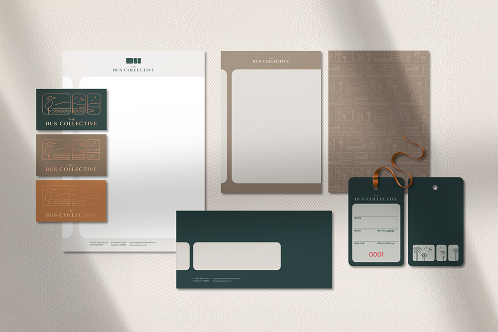 The Bus Collective is a pioneering resort hotel in Southeast Asia that repurposes decommissioned buses into unique guest rooms, seamlessly blending sustainability, innovation and local culture. Its name reflects the collection of 20 upcycled buses and the spirit of community, inviting guests to embark on a shared journey of exploration within the vibrant ecosystem of Singapore’s Changi Village. The brand identity emphasises the resort’s commitment to sustainability and its ability to offer an unconventional yet luxurious experience, where nature and authentic local attractions converge. The logo, inspired by a bus window framing diverse sceneries, symbolises infinite possibilities for adventure and immersion, reinforcing the brand’s modern, sophisticated and environmentally conscious ethos.